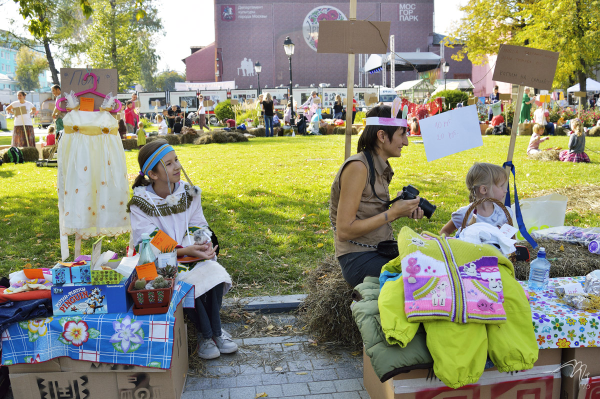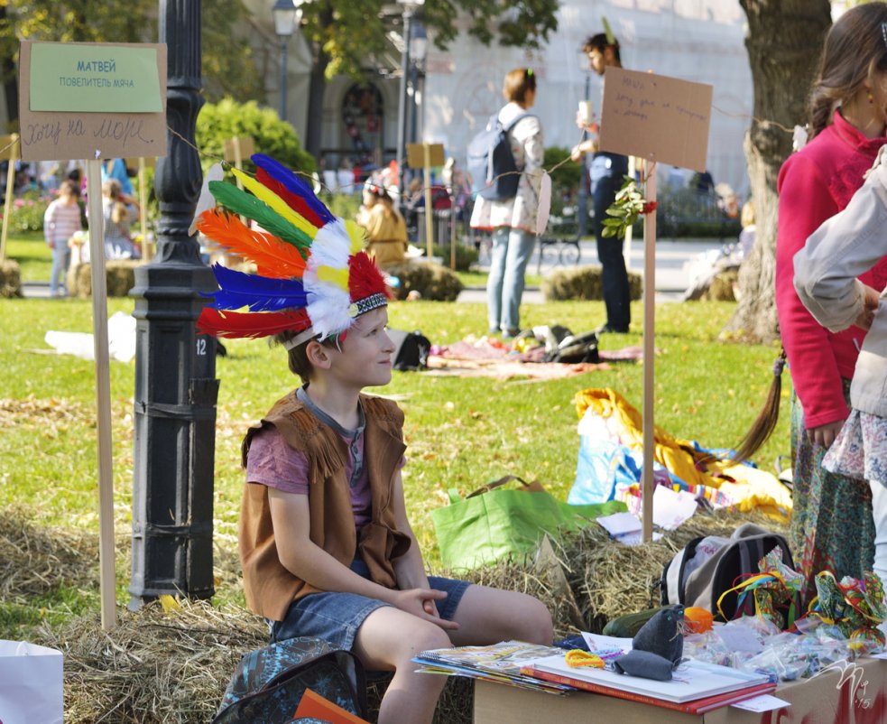 В этом году попали на индейское лето в саду Эрмитаж - ежегодный осенний фестиваль журнала Seasons. Занесло нас теплым индейским ветром туда в качестве продавцов Детского секонд-хэнда - это когда продают детские поделки и соответствующую еду, а также качественные, но по разным причинам ненужные вещи - одежда, из которой выросли, книги, которые уже прочитали, игры и игрушки, которые давно пылятся на полке.