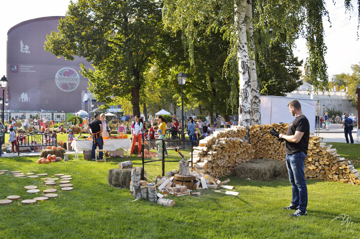 Они оформили место, где можно было наколоть дрова, или посмотреть, как это делают профессионалы. Или просто сфотографироваться.