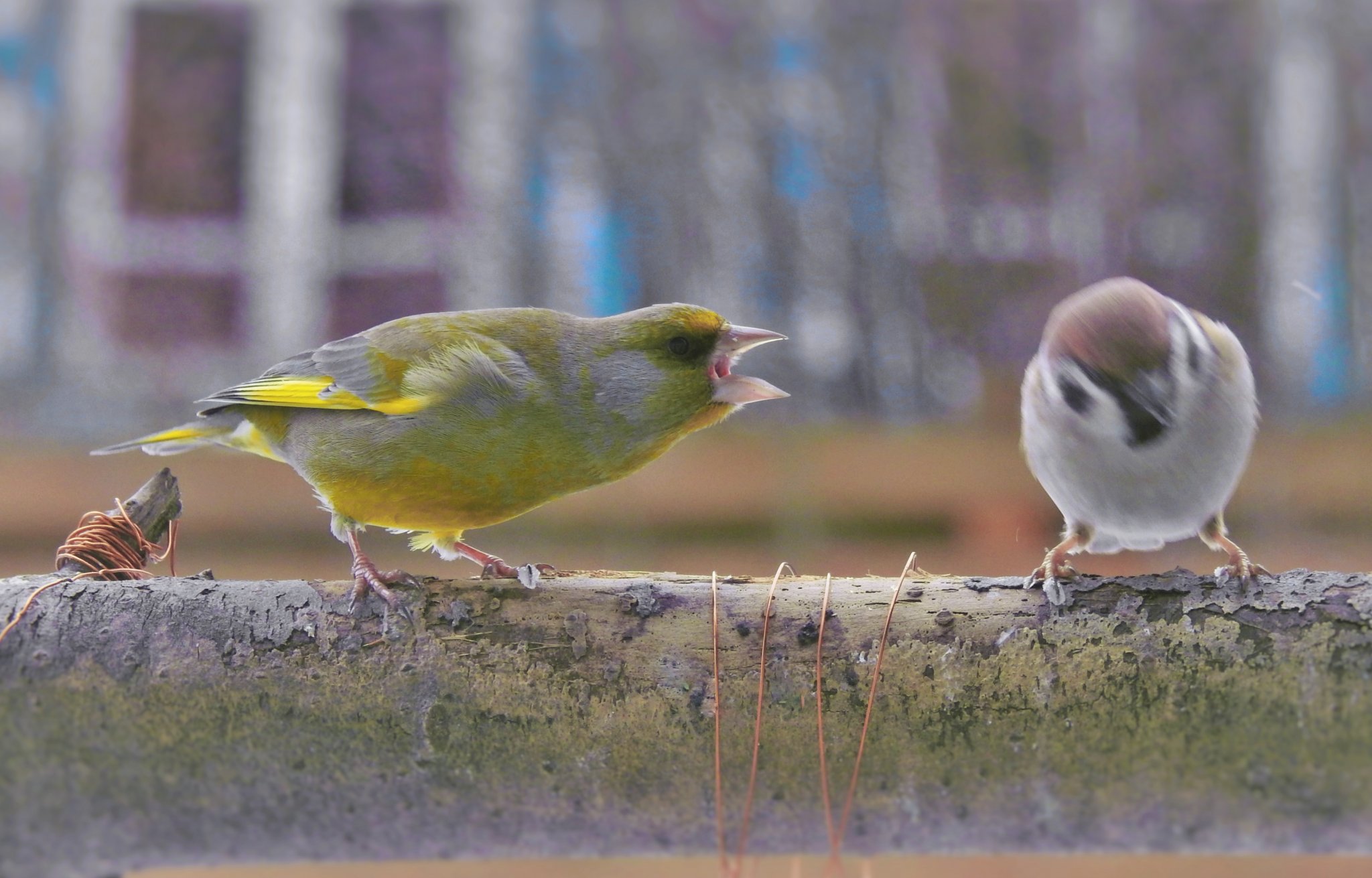У НАС КАРАНТИН! СОБЛЮДАЙ ДИСТАНЦИЮ В ПОЛТОРА МЕТРА...! (зеленушка и воробей)
