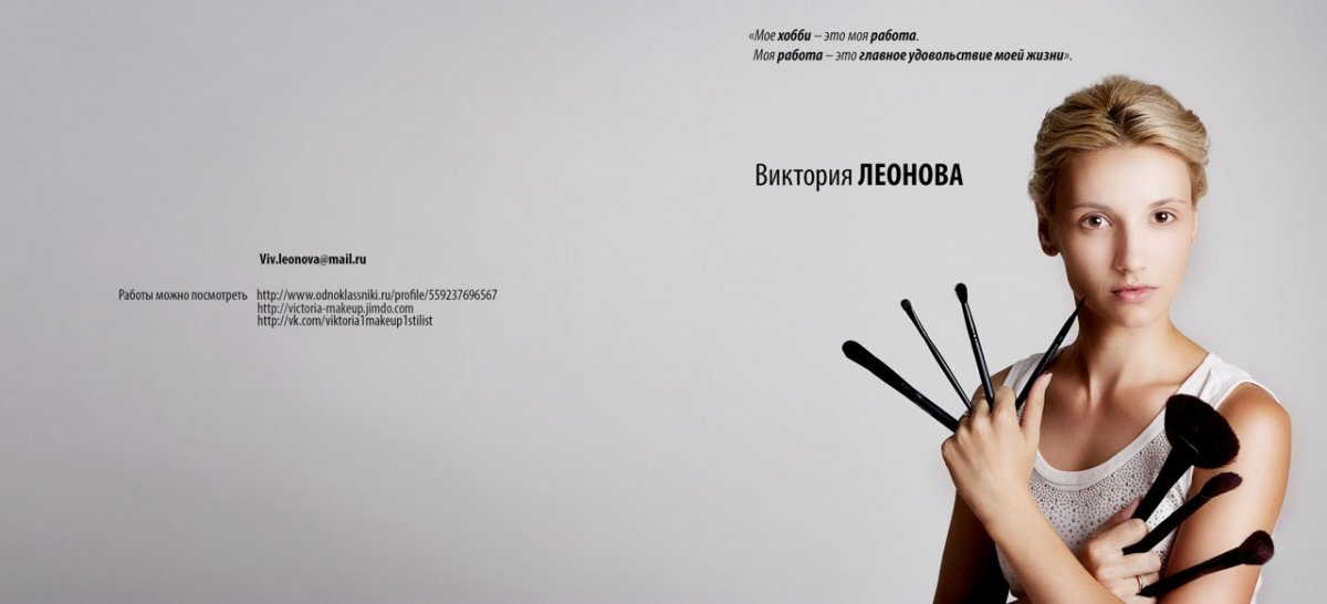 Получить ответы на любые вопросы, а также записаться Вы сможете, позвонив по одному из телефонов: 8-988-086-60-09 ___8-963-380-90-66 Вы можете написать мне письмо на электронную почту Viv.leonova@mail.ru Мои работы можно посмотреть http://vk.com/viktoria1makeup1stilisthttp://victoria-makeup.jimdo.com/