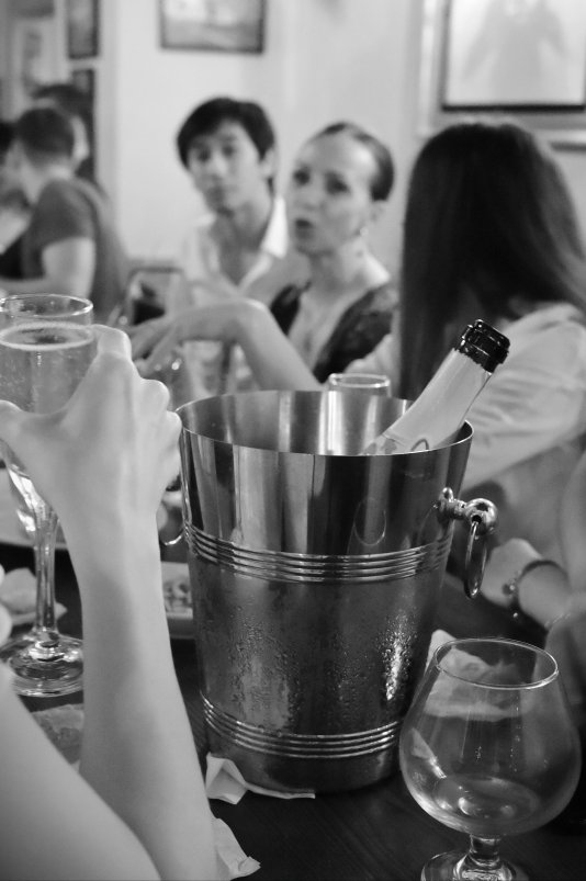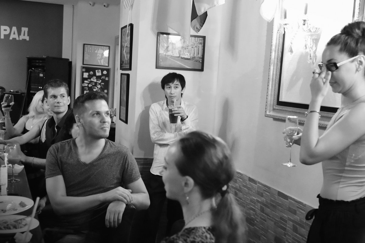 Репортаж с минибанкета в Баре "Ленинград",городе Шанхае.Не судите строго,- снимал в вольном стиле,сам активно при этом отмечая премьеру спектакля. Поставил камерный ЧБ и нажимал без особой надежды,т.к. ИСО часто зашкаливала до 25600. Но когда просмотрел...вот,решил поделиться.