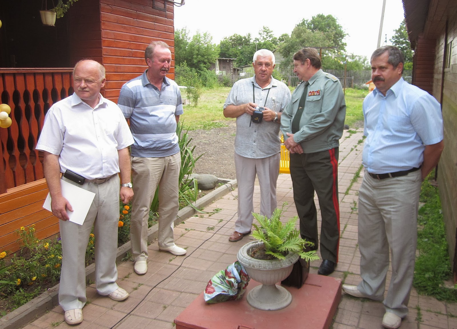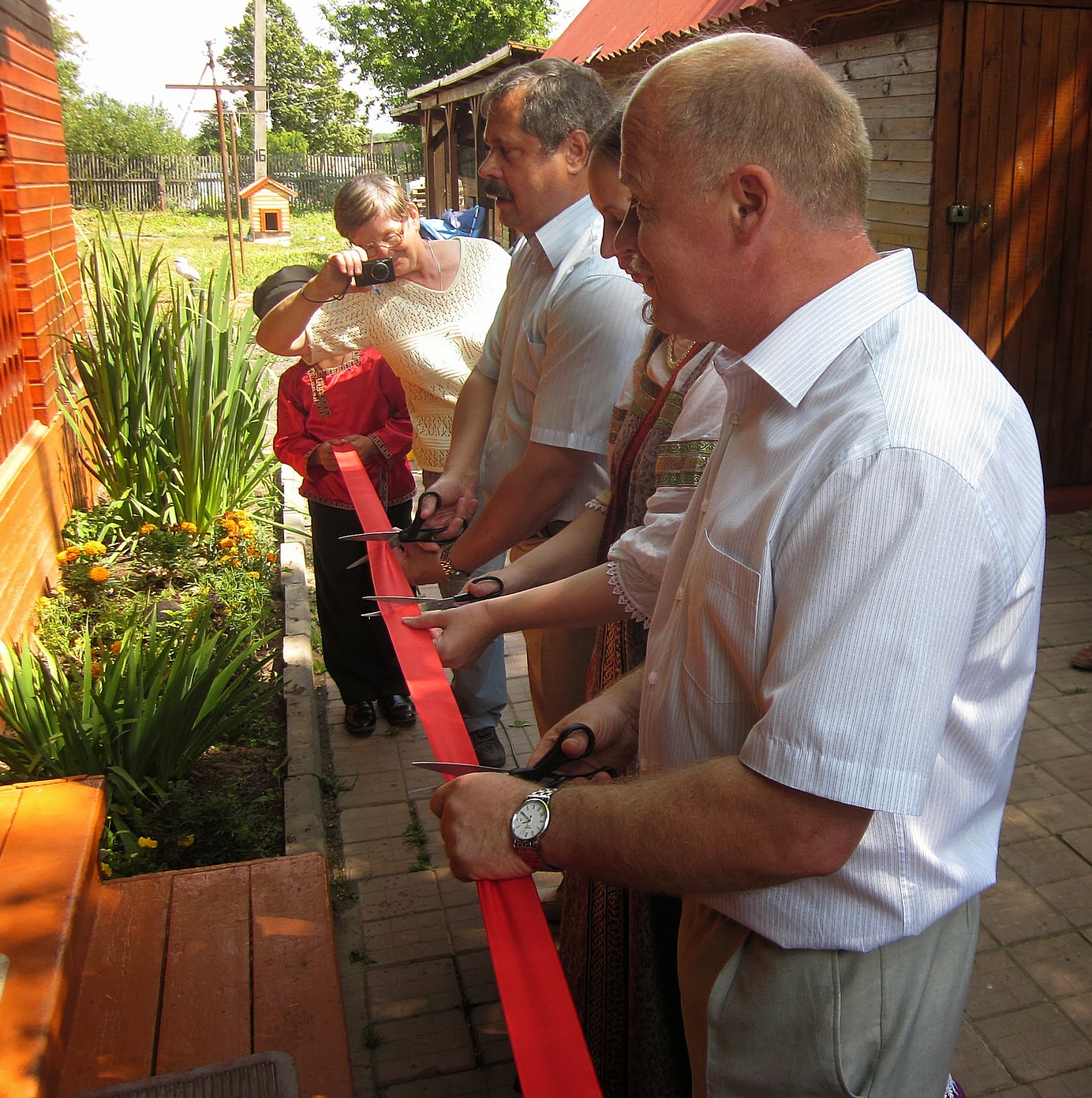 Традиционную в этих случаях ленточку разрезали глава администрации Ростовского района Шевцов А.П., глава Петровского поселения Пестов А.Ю. и хозяйка дома. А старшая дочь Татьяна встречала хлебом - солью всех пришедших и приехавших на праздник гостей. На открытии музея прозвучало много тёплых слов в адрес семьи, взявшейся за столь непростое дело – содержание семейного музея. Большим украшением выставки стала картина, написанная и подаренная членом Союза художников РФ, нашим земляком, генералом Карпычевым А.А. Директор завода ЖБИ Солянов В.А. подарил изделие своего предприятия – бетонного ёжика. Прозвучали приветствия от мэра Ростова Шевкопляса К.Г., учительницы Сухановой А.Ф., представителей турфирм Ростова и Ярославля.