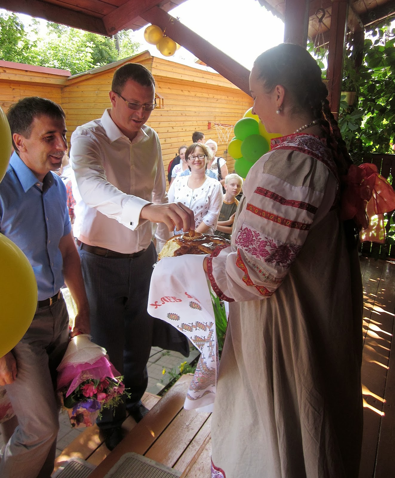 Встречает гостей хлебом - солью дочь хозяев Татьяна.