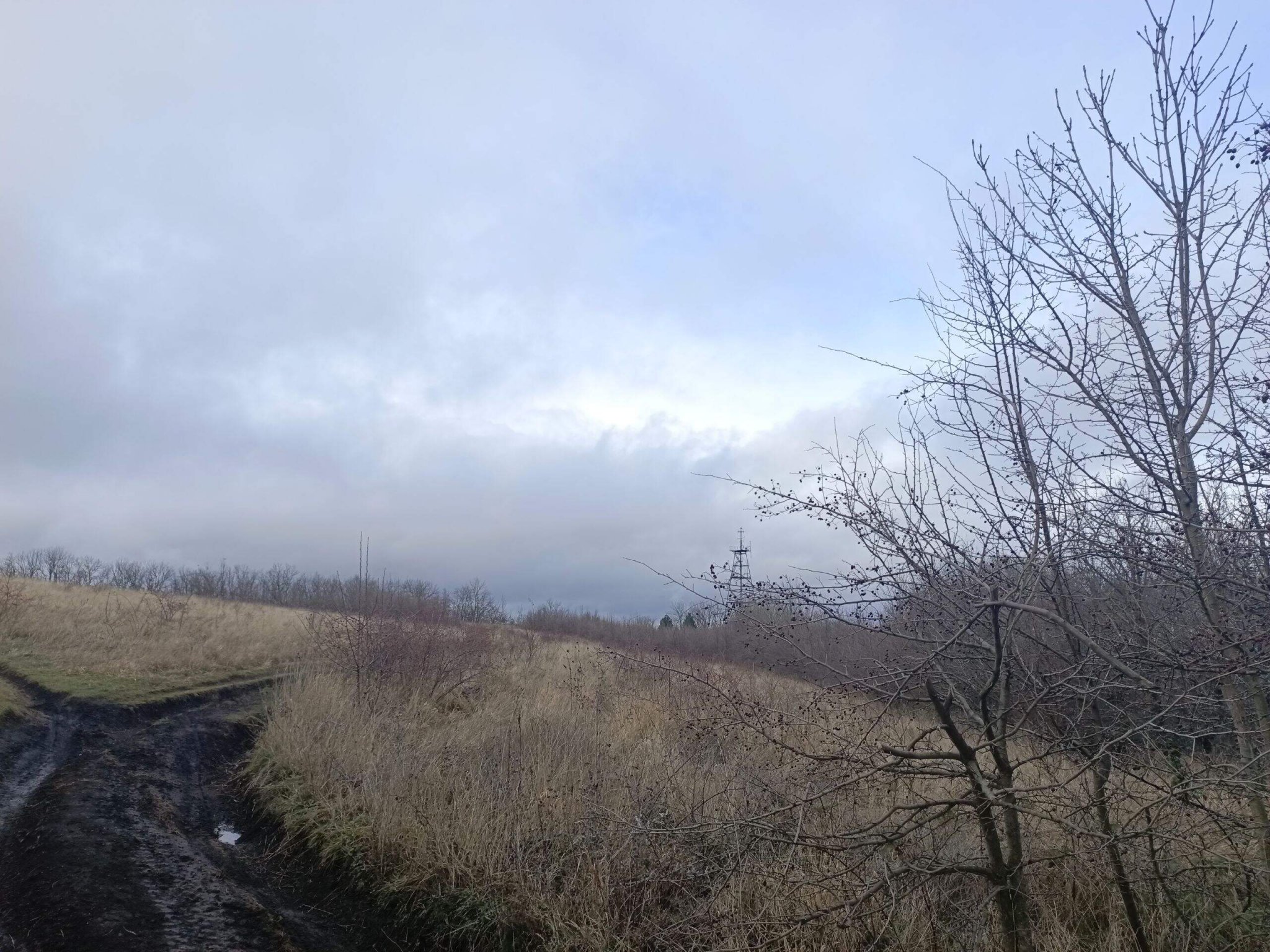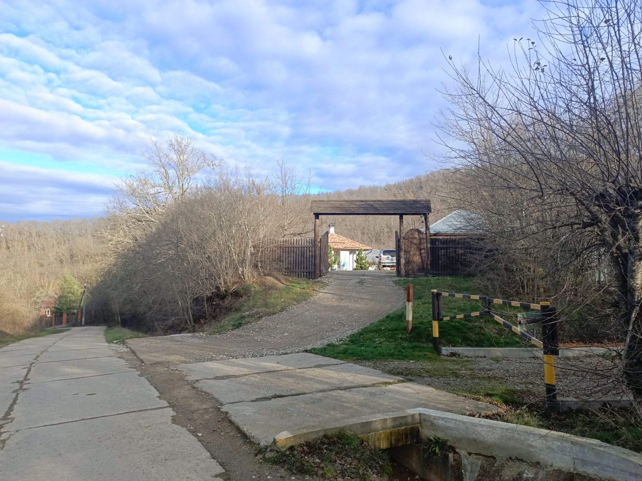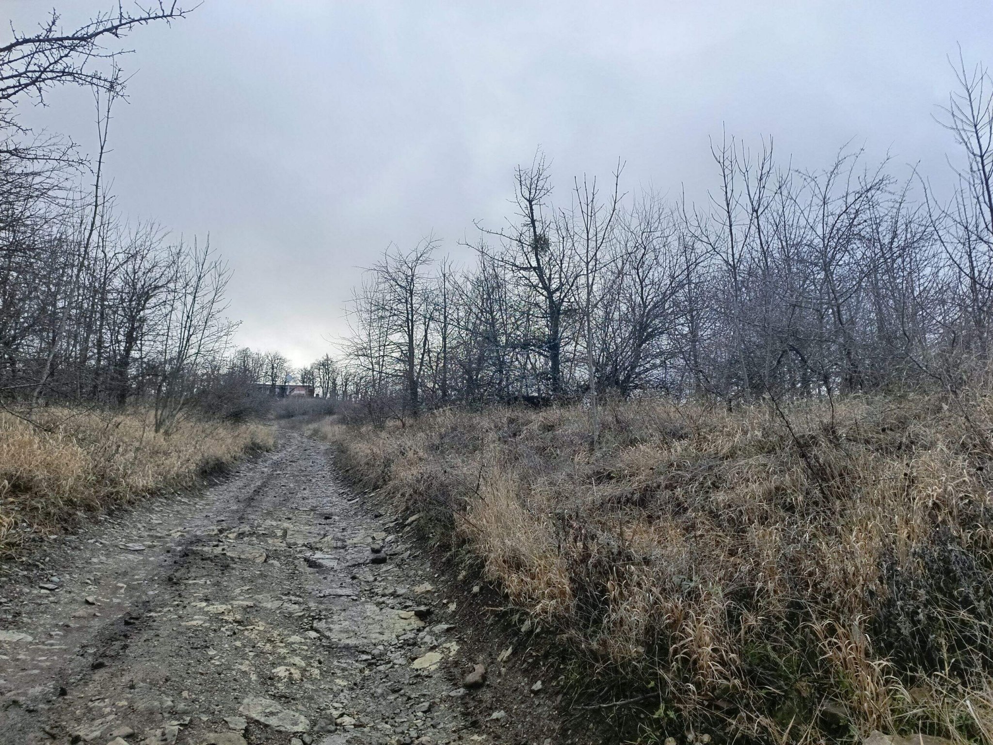 Приход к началу дороги на верх... Капает дождь