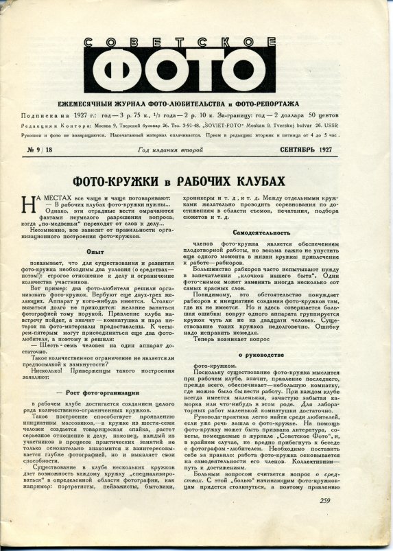 Журнал Советское Фото 1927 год № 9 (сентябрь)